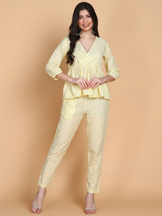 Yellow Sunflower Block Printed Cotton Co-ord Set