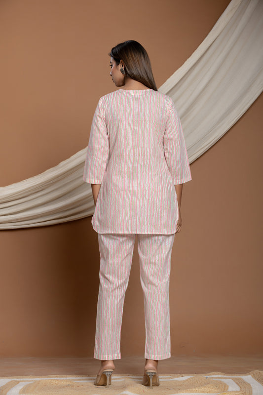 Baby Pink Stripped Cotton Co-ord Set