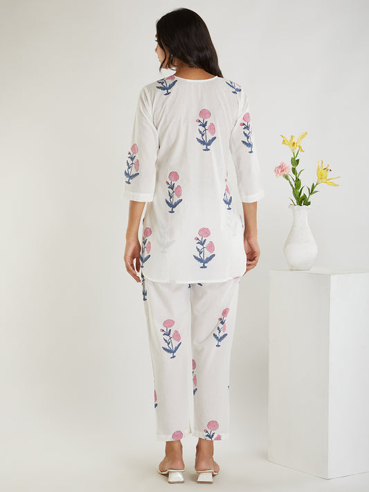 Hans White Hand Block Printed Jaipuri Co-ord Set